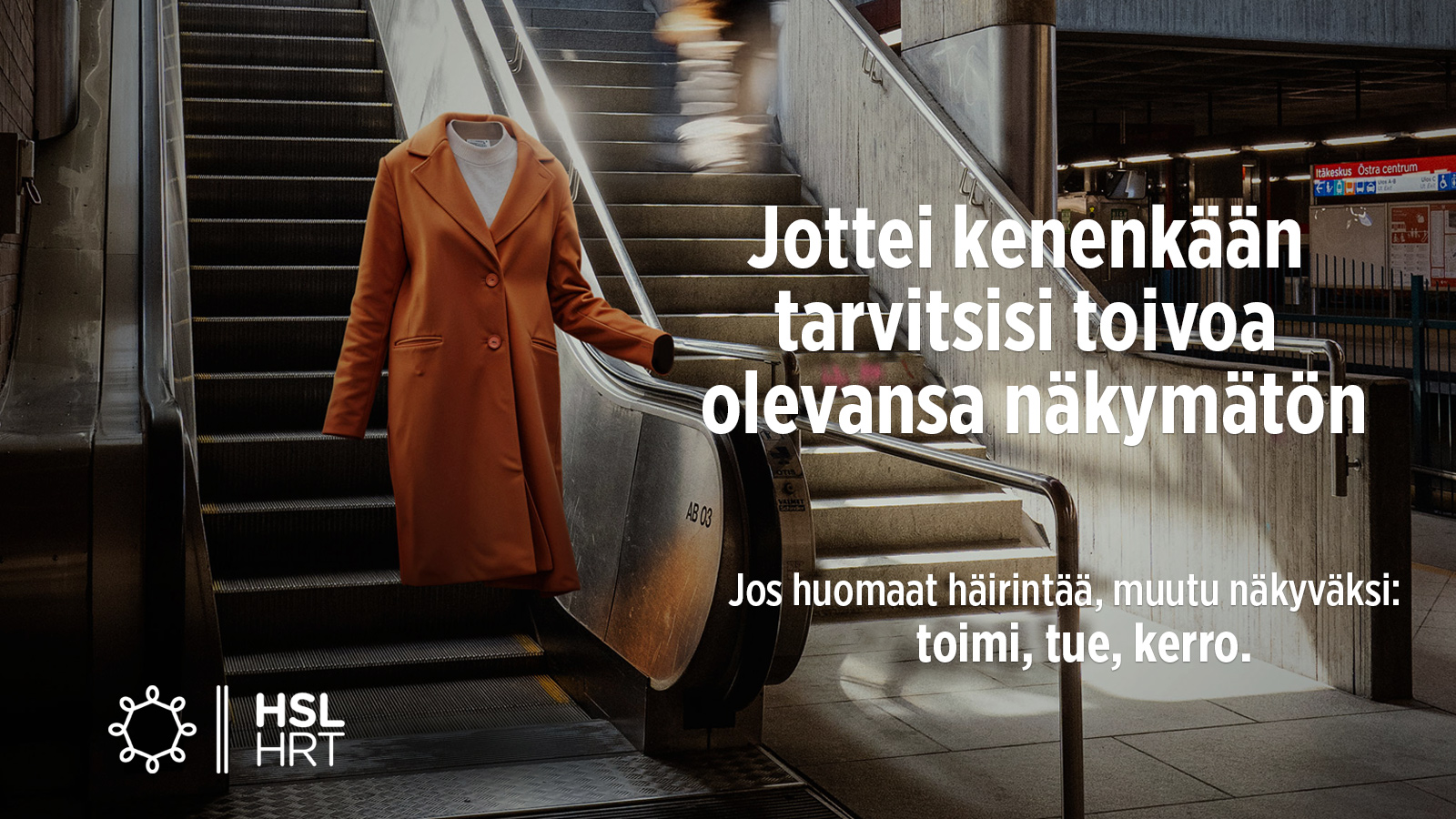 HSL aloitti 12.3. kampanjan, jonka teemana on jokaisen oikeus liikkua joukkoliikenteessä näkyvästi omana itsenään ilman häirintää, syrjintää ja rasismia. Kampanja ”Jottei kenenkään tarvitsisi toivoa olevansa näkymätön” näkyy liikennevälineissä ja lisäksi teemaan liittyy oivalluttava 10 jakson podcast-sarja, jossa häirintää kokeneet ihmiset jakavat ajatuksiaan aiheesta.