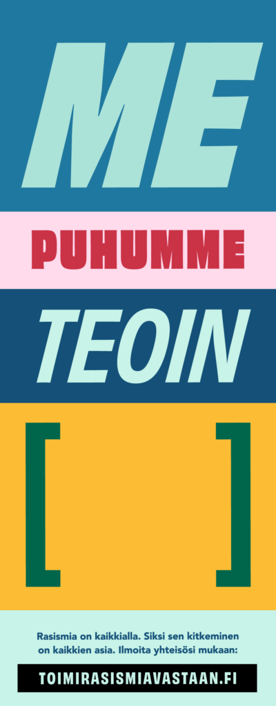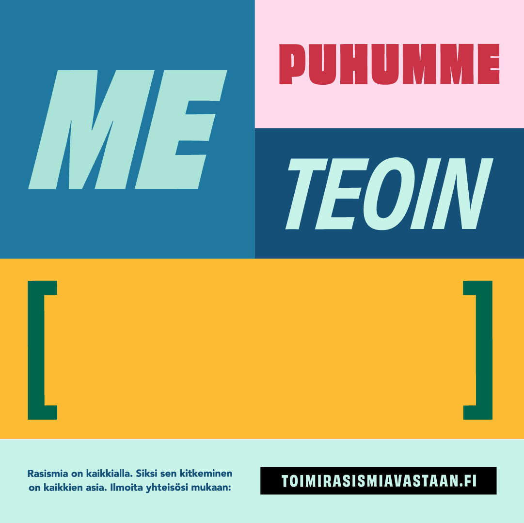 Kampanjan materiaalit ovat mukaan sitoutuneiden toimijoiden vapaasti käytettävissä. Mukana olevia toimijoita kannustetaan viestimiseen omissa kanavissaan. Haastakaa sidosryhmänne rohkeasti mukaan!